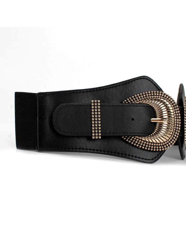 Cinturón Faja elastizada de Pu con hebilla de diseño boho.Medida: 82cm x 10cm.