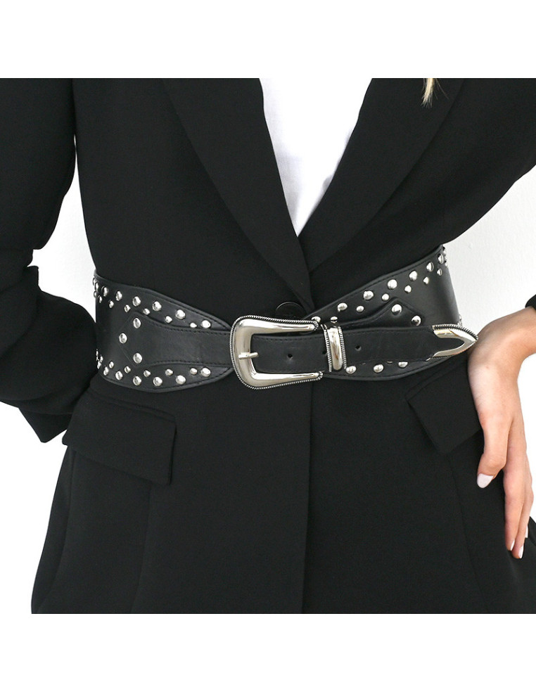 Faja de pu con tachas y hebilla boho. Medidas: 107cm x 8cm