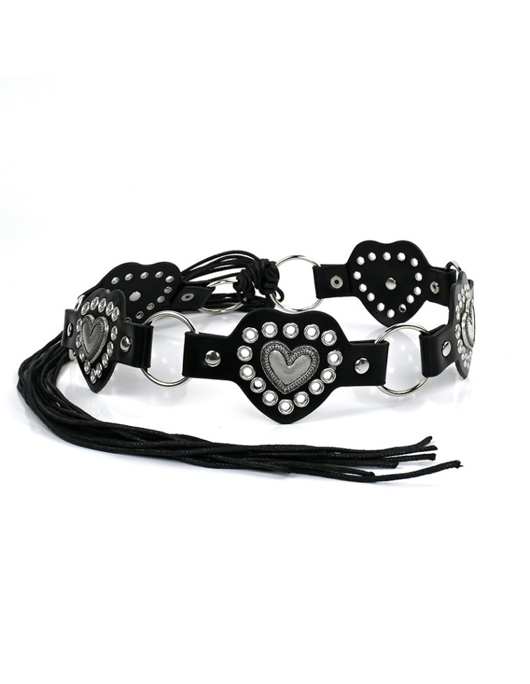 Cinturón Faja PU en forma de corazón con múltiples tachas y ojales con diseño exclusivo níquel.