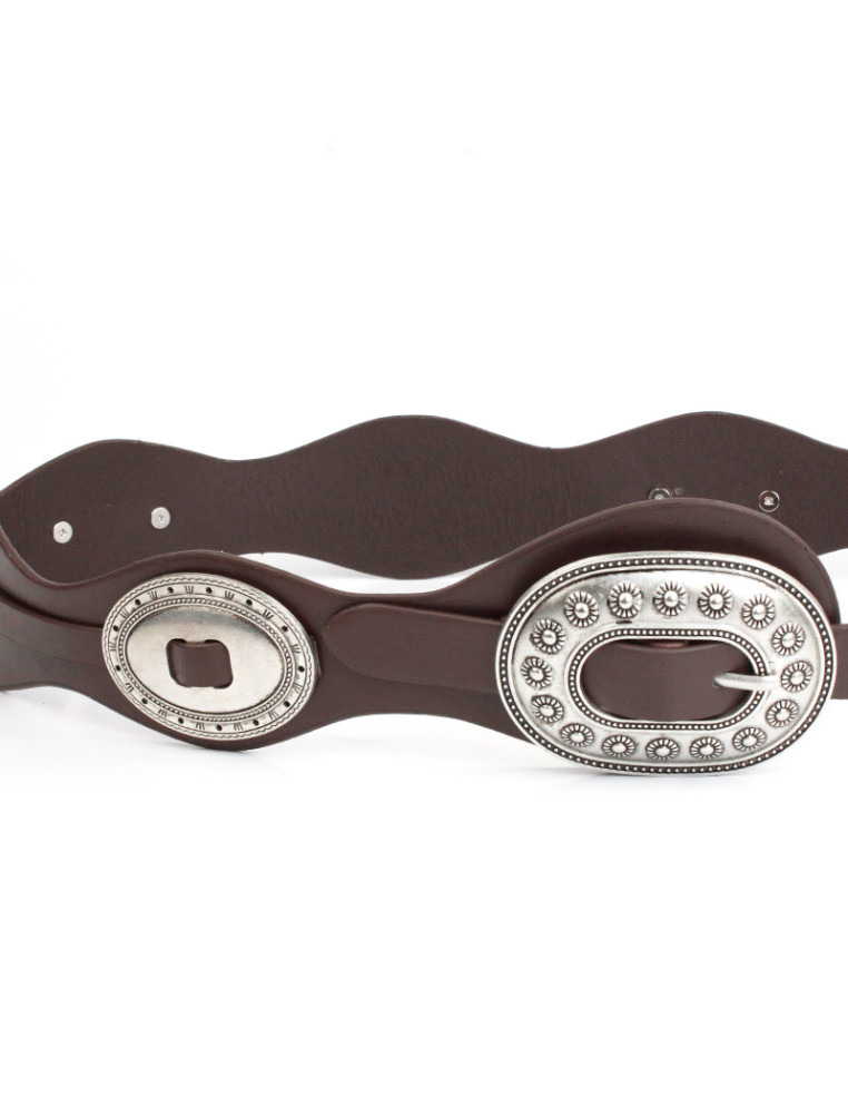 Cinturón faja de PU con habilla y apliques exclusivos níquel.
