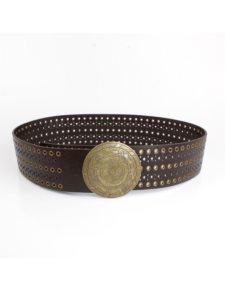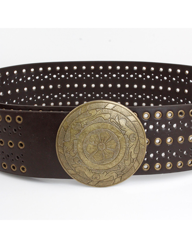 Cinturón faja de PU con múltiples ojales, con hebilla de metal.