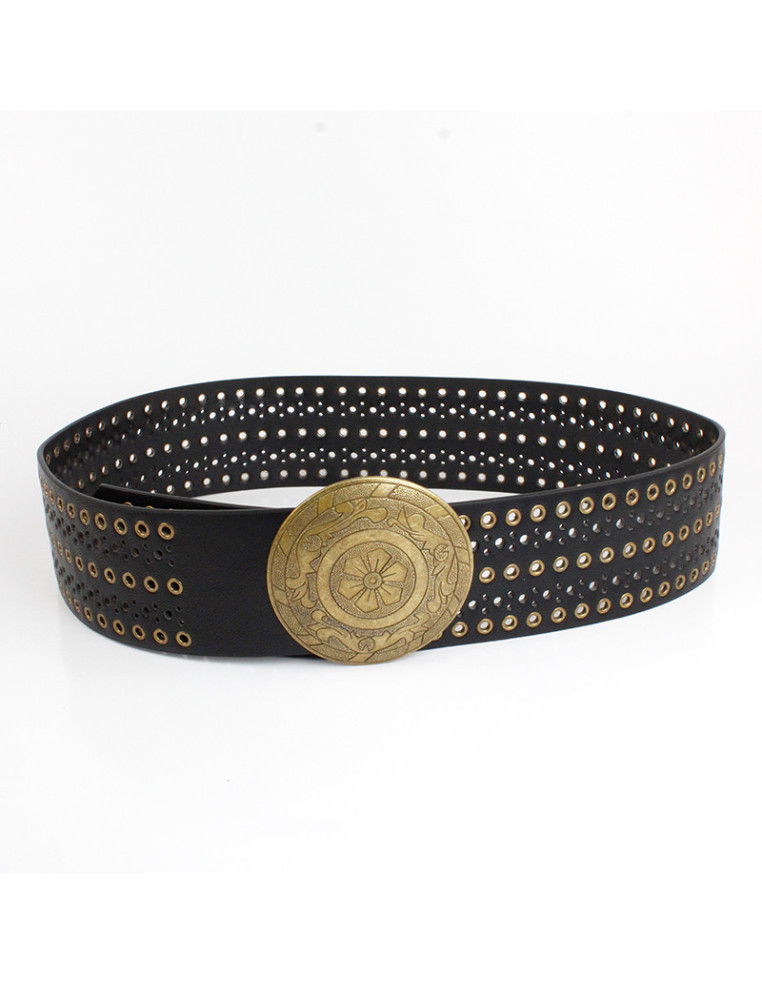Cinturón faja de PU con múltiples ojales, con hebilla de metal.