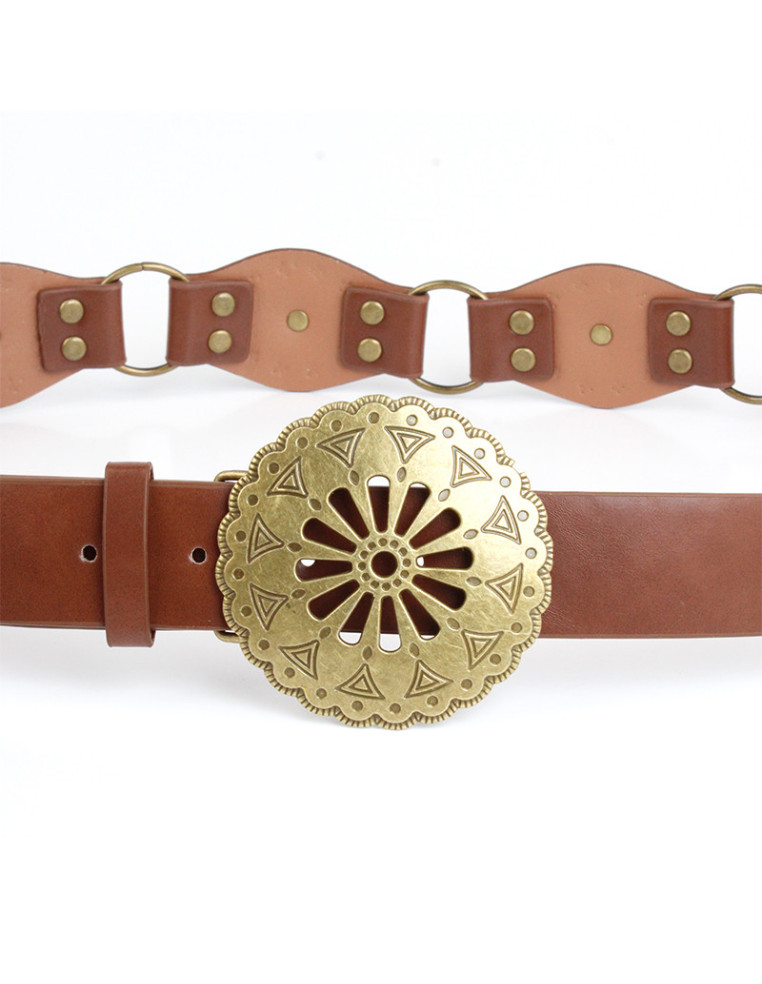 Cinturón Faja de Pu con hebilla. Argollas y apliques con diseño exclusivo.