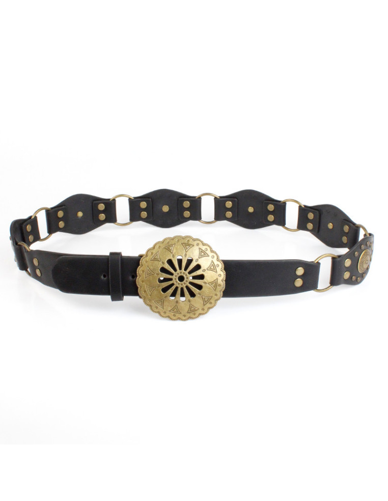 Cinturón Faja de Pu con hebilla. Argollas y apliques con diseño exclusivo.