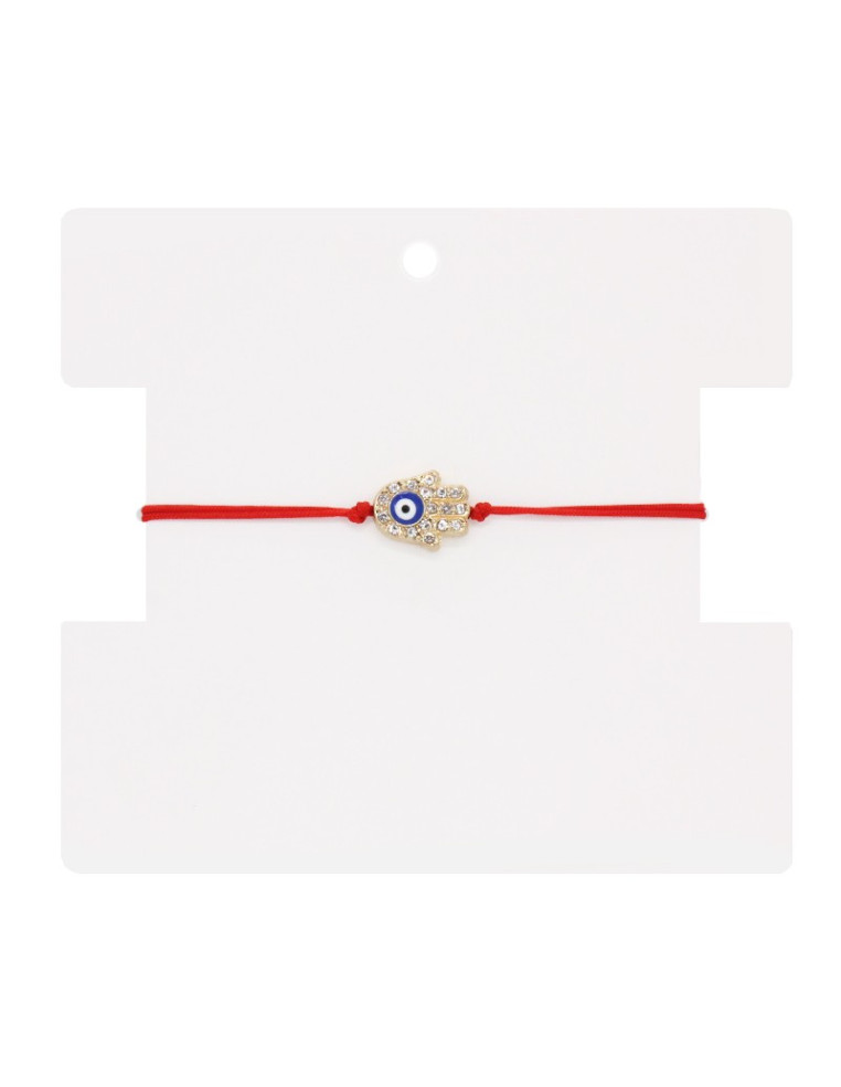 Pulsera de hilo con cierre en macramé con dije exclusivo de strass dorado.