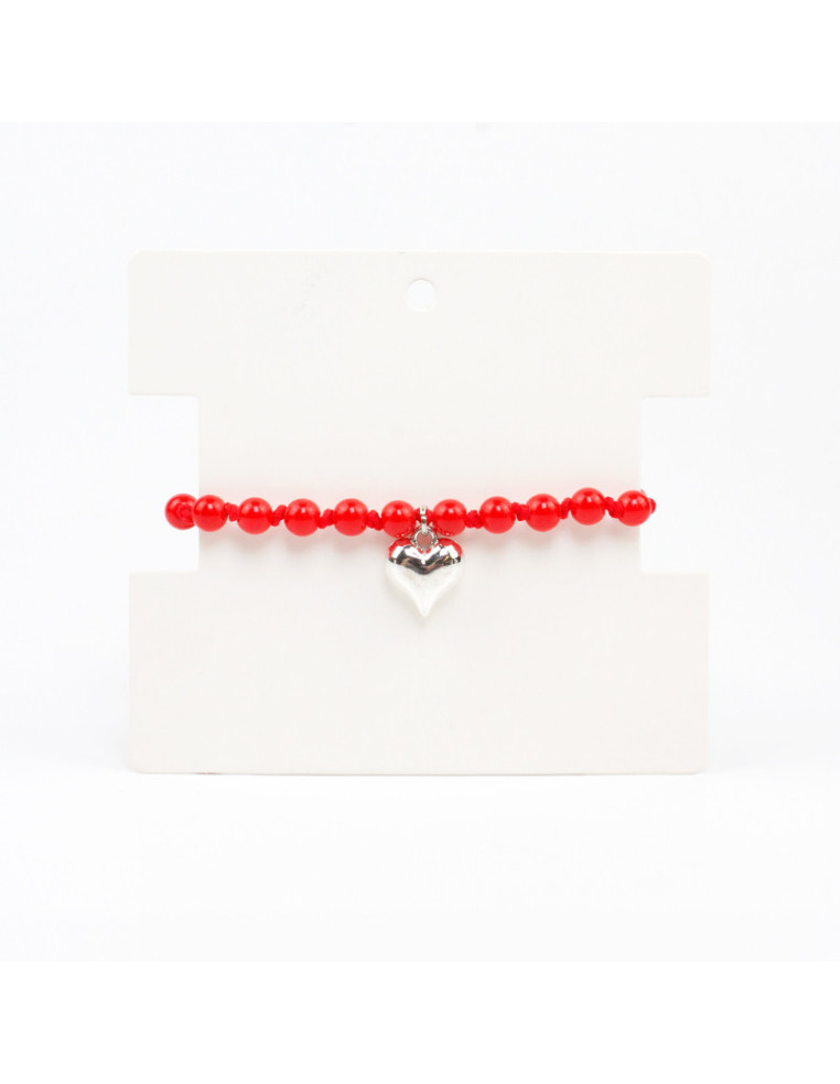 Pulsera de hilo con cierre en macramé con bolitas de vidrio con dije exclusivo níquel.