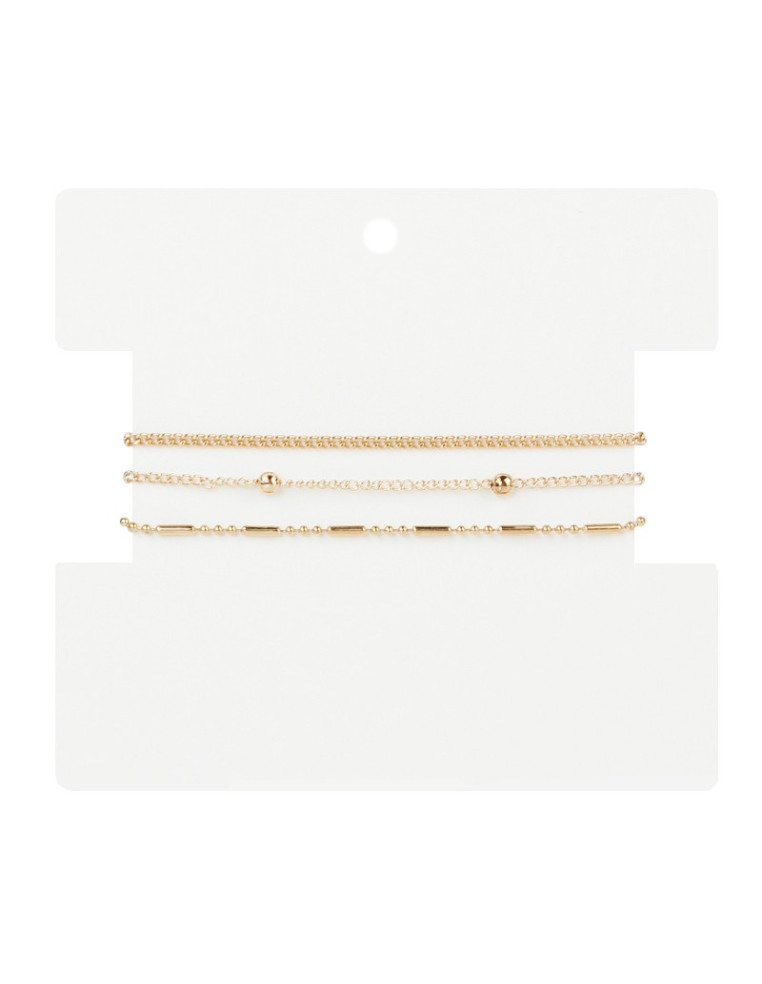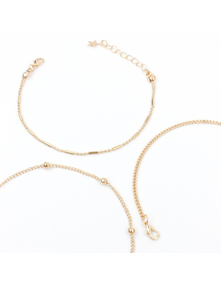 Set de tres pulseras de cadena diferenciada con dijes exclusivos dorados.