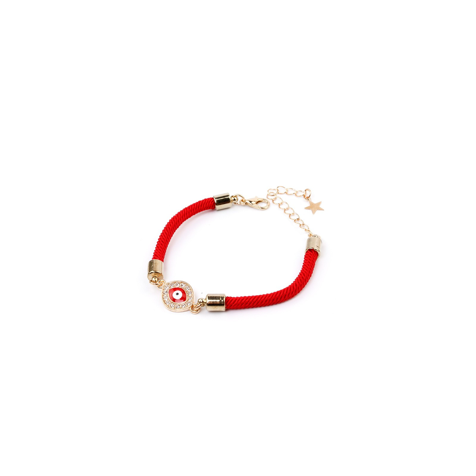 Pulsera trendy de cordón diferenciado con dije de strass exclusivo doble agarre esotérico.Cierre con mosquetón y largo ajustable con cadena de enganche.
