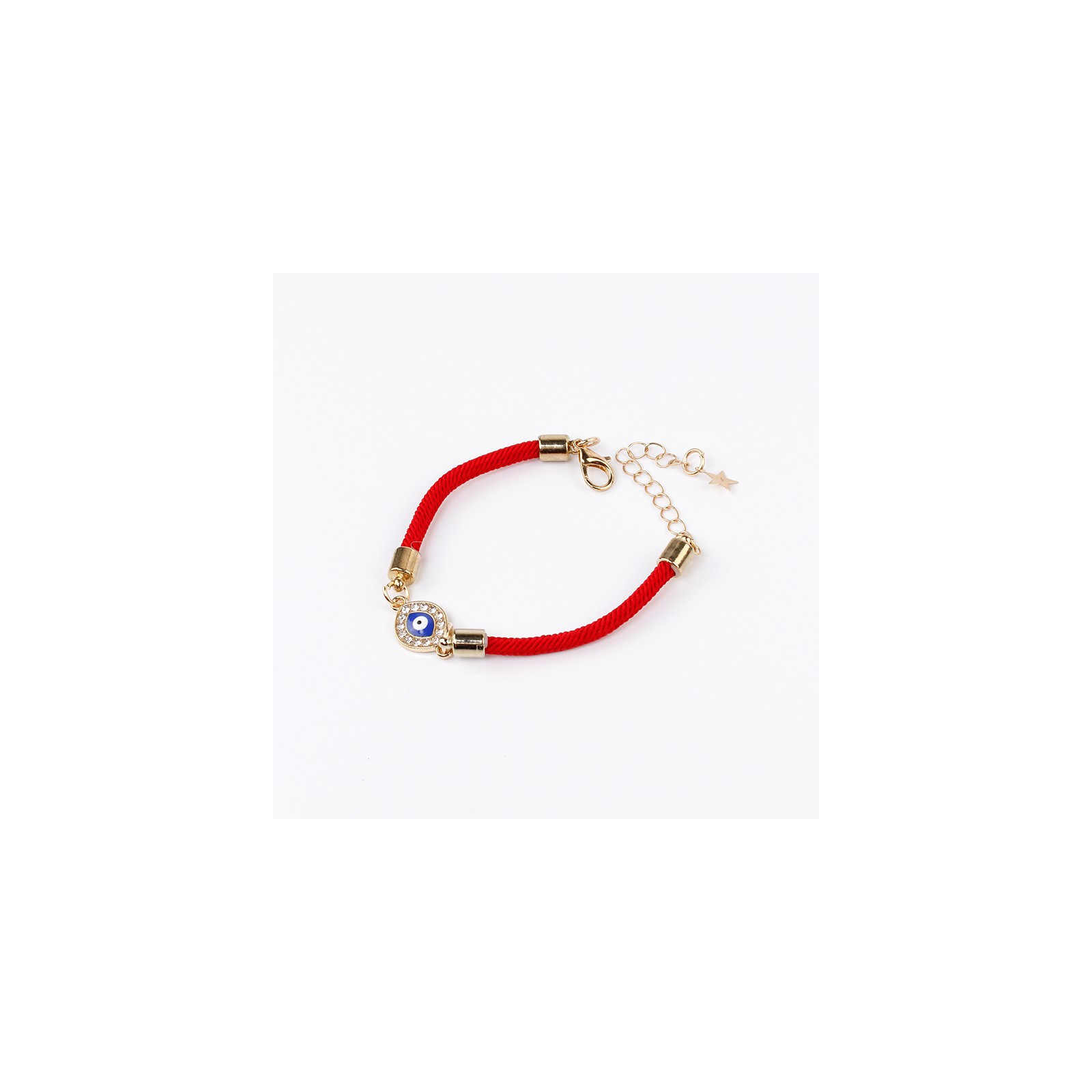 Pulsera trendy de cordón diferenciado con dije de strass exclusivo doble agarre esotérico.Cierre con mosquetón y largo ajustable con cadena de enganche.