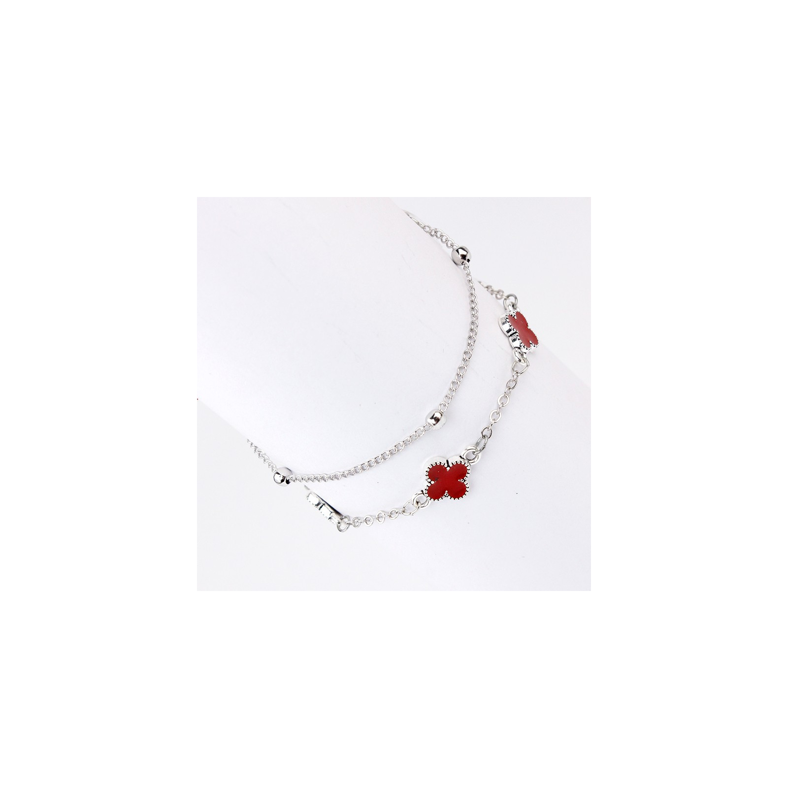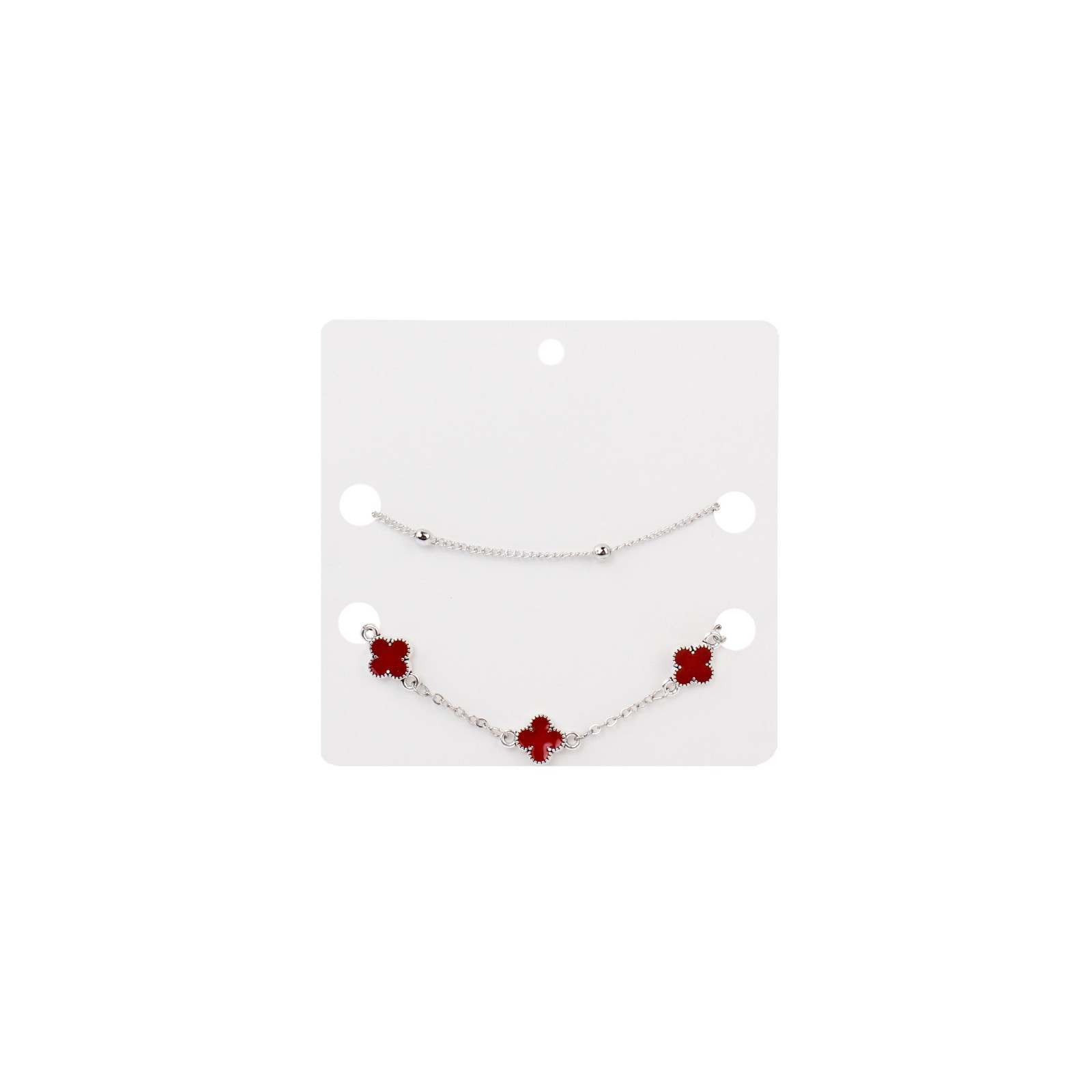 Set de pulsera trendy de cadenas diferenciadas con múltiples dijes exclusivos pintados a mano con forma de trébol.
