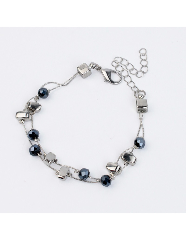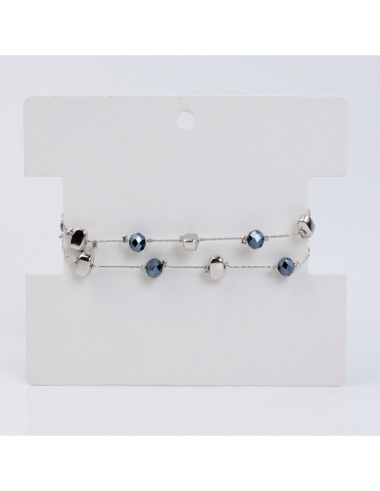 Pulsera doble caída de cadena diferenciada con piezas de ccb y rocas de cristal.