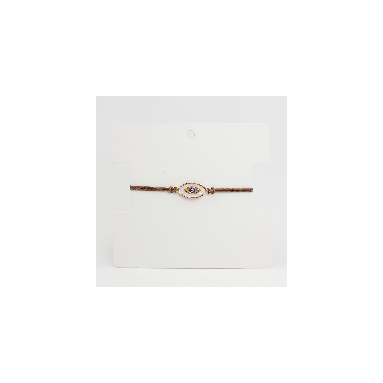 Pulsera de hilo con dije doble agarre, con forma de ojo turco y nácar natural.