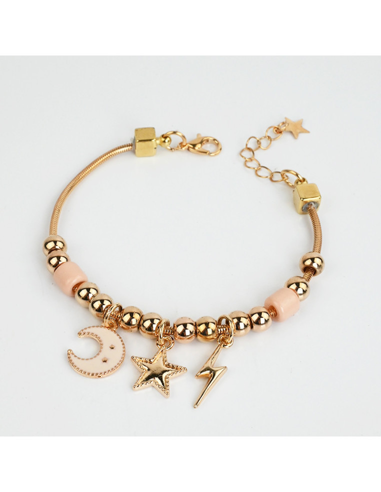 Pulsera de cadena diferenciada, enhebrada con piezas diferenciadas y dijes exclusivos de fundición.