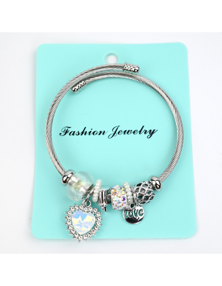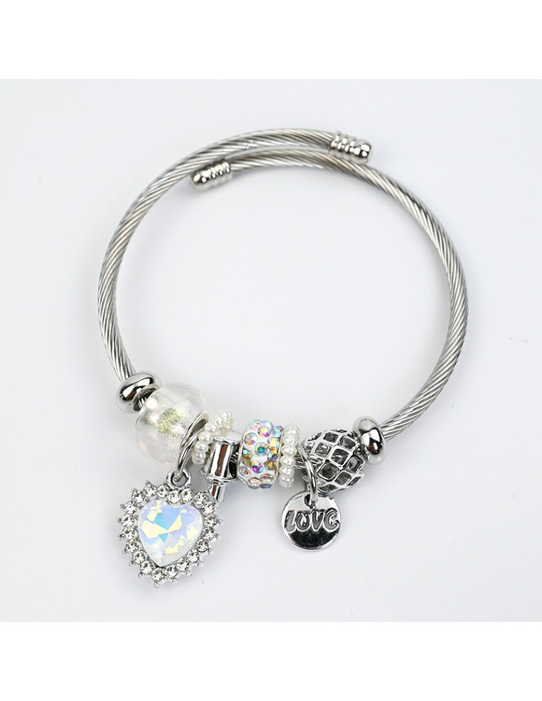 Pulsera multi charms de acero con dijes pasantes de fundición y ccb. Diámetro ajustable.
