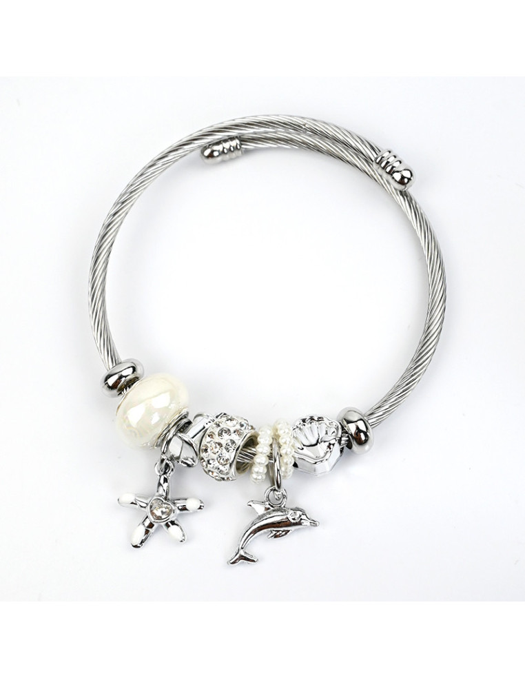 Pulsera multi charms de acero con dijes pasantes de fundición y ccb. Diámetro ajustable.