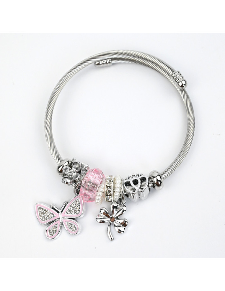 Pulsera multi charms de acero con dijes pasantes de fundición y ccb. Diámetro ajustable.