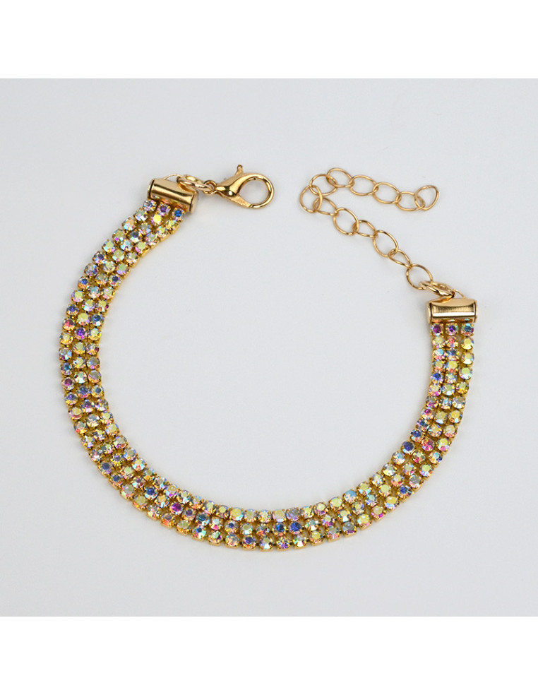 Pulsera de triple caída de cadenas diferenciadas de strass.