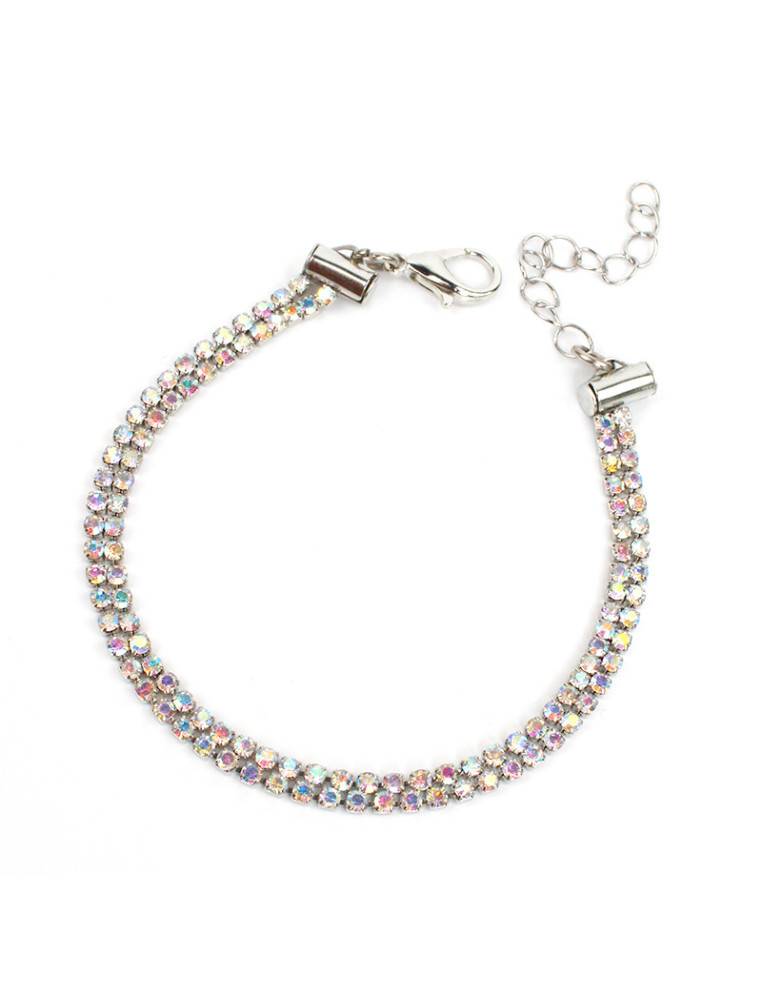Pulsera de doble cadenas de strass diferenciadas.