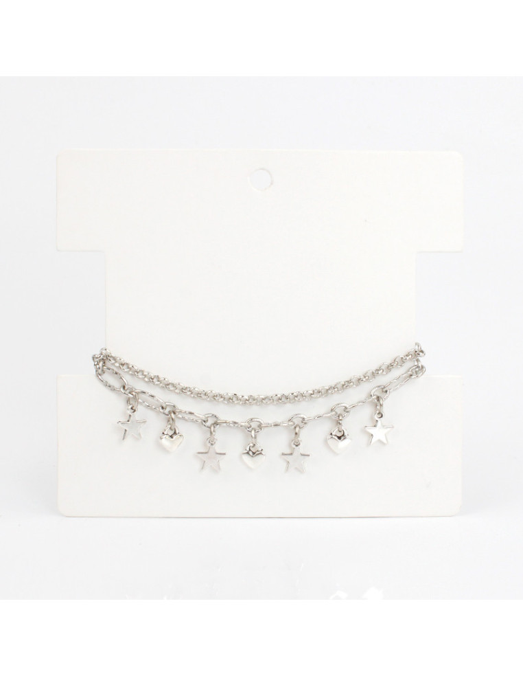 Pulsera multicharms de doble cadena, con dijes de fundición con forma de estrella y corazón.