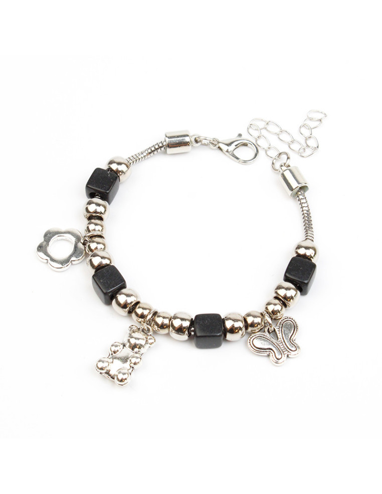 Pulsera de cadena con dijes de fundición, cuentas de acrílico y pasantes de CCB.