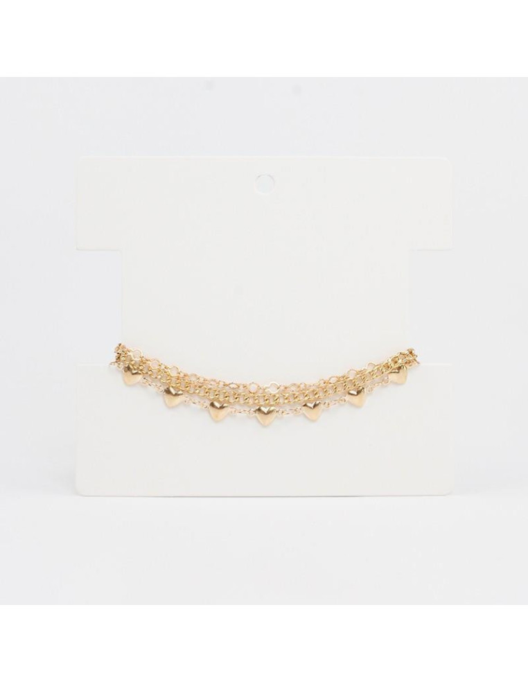 Pulsera de cadenas, con eslabones en forma de corazón. Medida: 17cm de largo ajustable con cadena de enganche de 10cm.