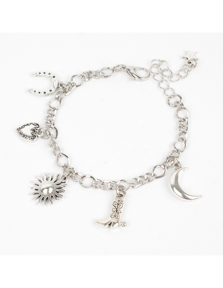 Pulsera multicharms de cadena, con dijes de fundición.Medidas: 16cm de largo, ajustable con cadena de enganche de 5cm.