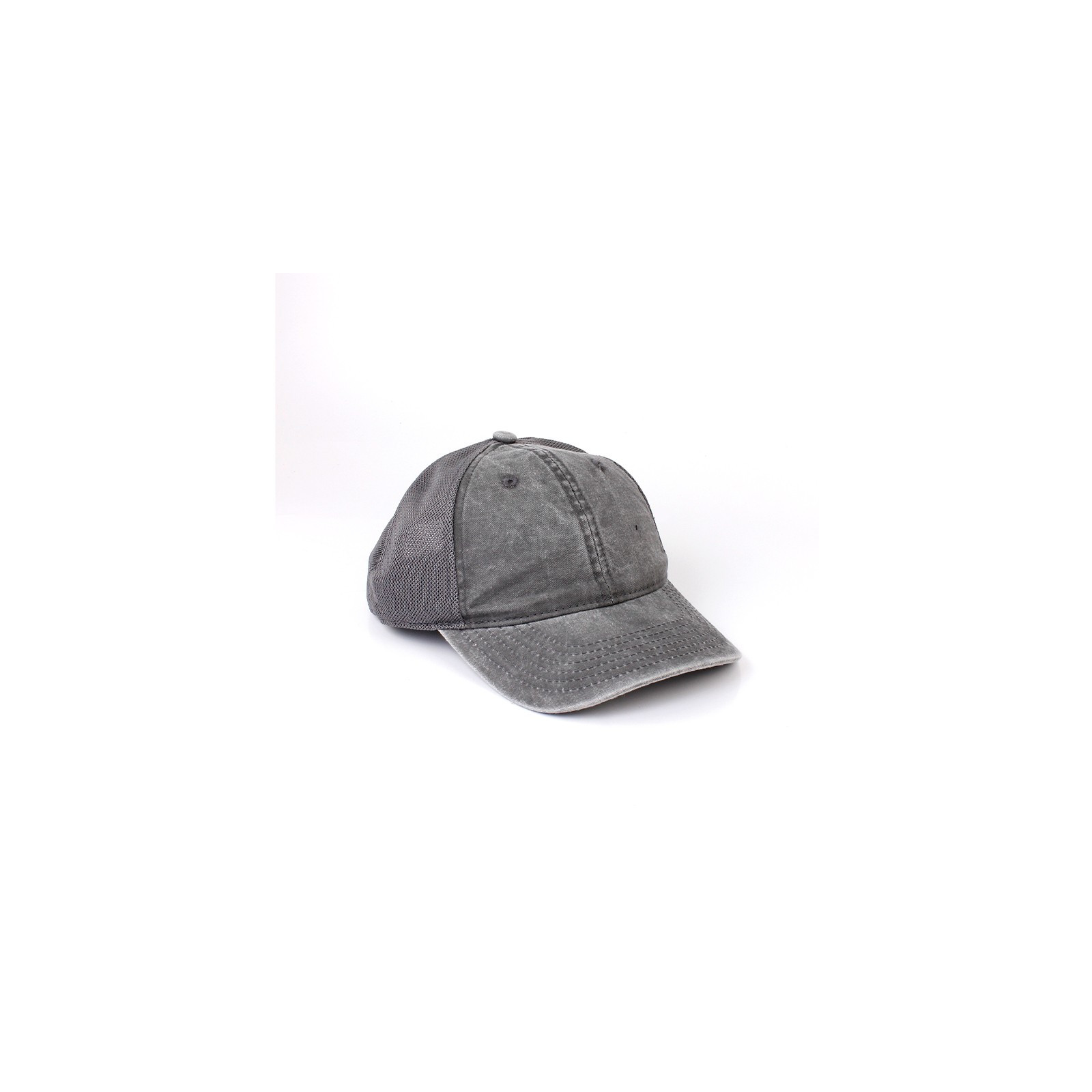 Gorra de gabardina con malla trasera y ajuste regulable.