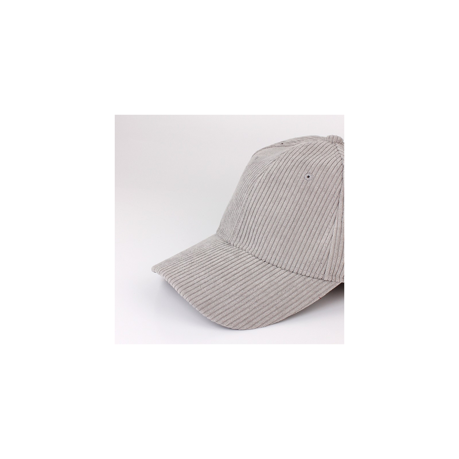 Gorra de corderoy con visera rígida y hebilla de ajuste regulable.