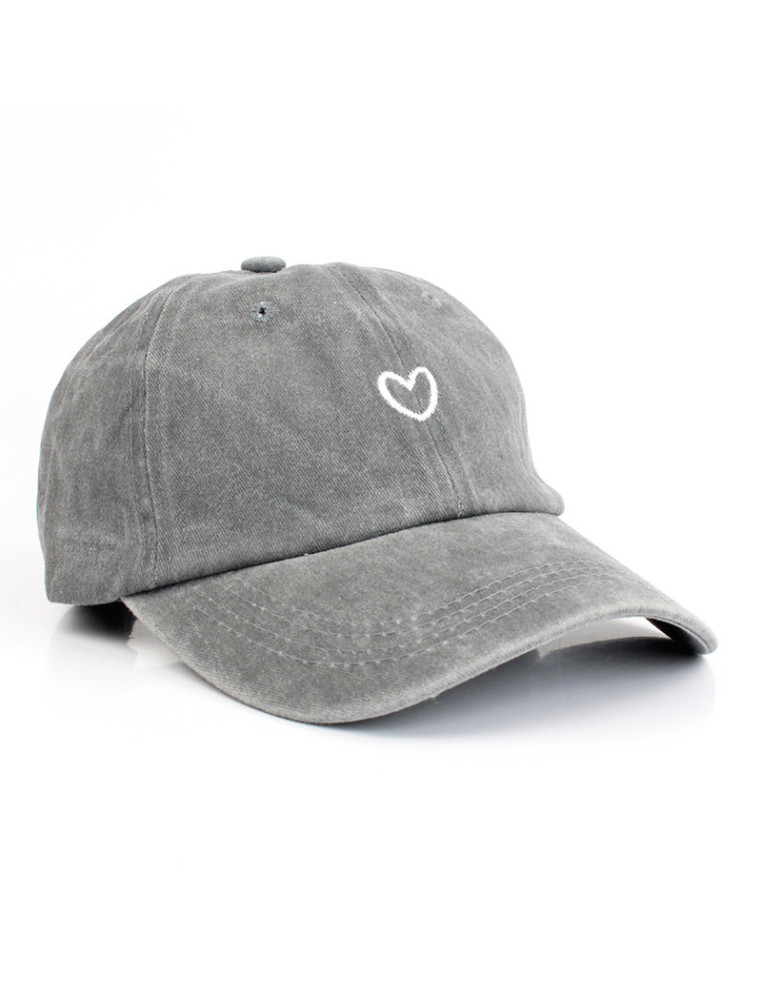 Gorra de gabardina bordada con forma de corazón y ajuste regulable.