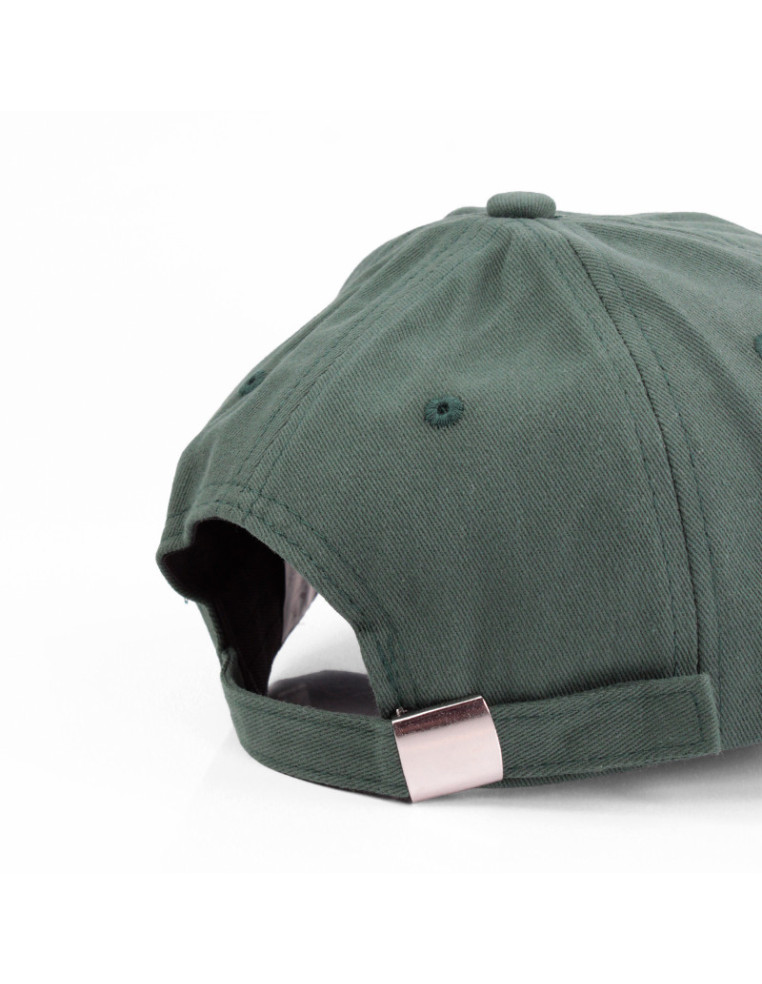 Gorra de gabardina bordada y ajuste regulable.