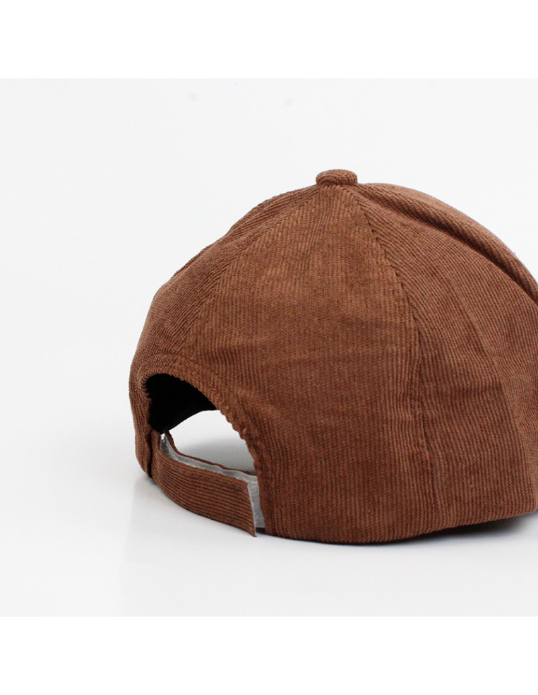Gorra de corderoy con visera rígida y hebilla de ajuste regulable.