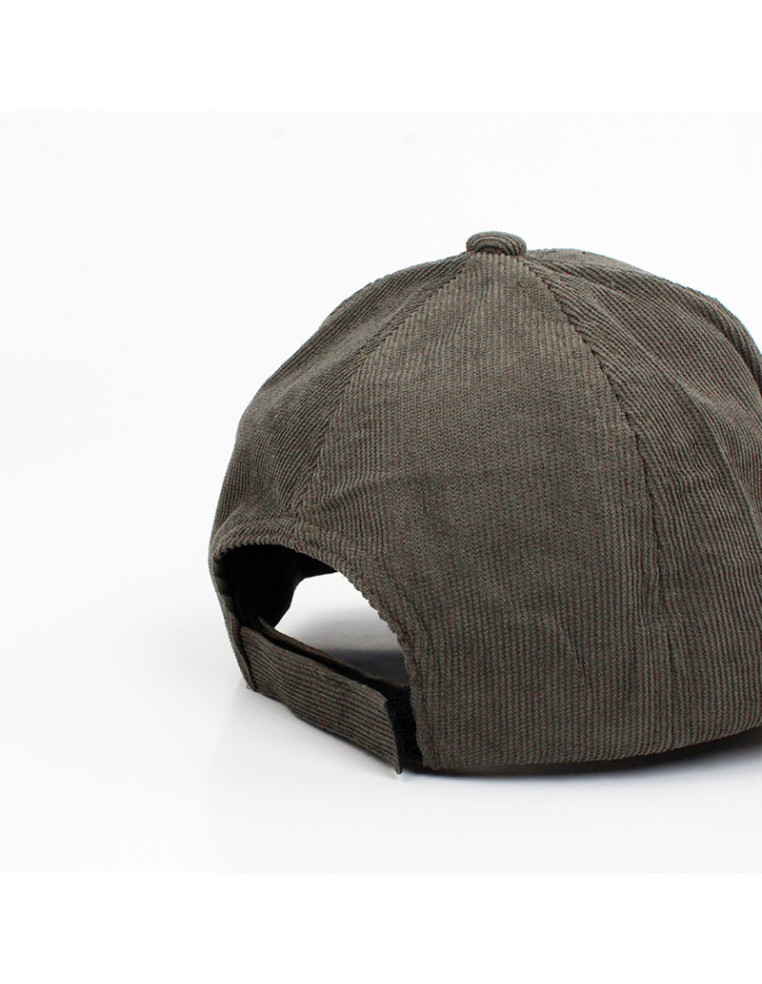 Gorra de corderoy con visera rígida y hebilla de ajuste regulable.