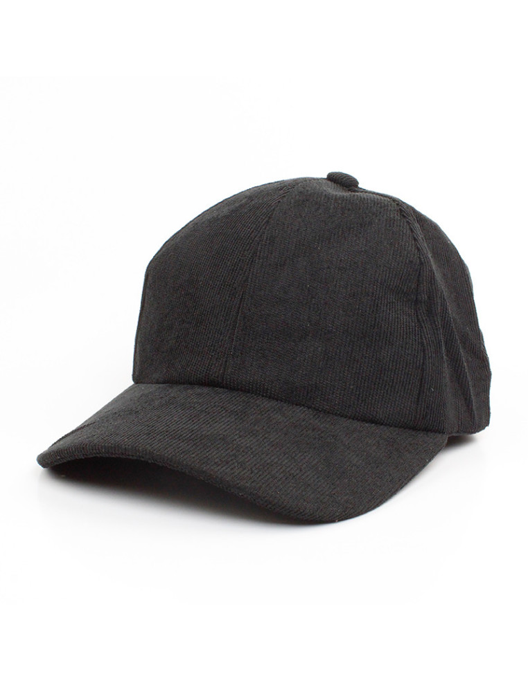Gorra de corderoy con visera rígida y hebilla de ajuste regulable.