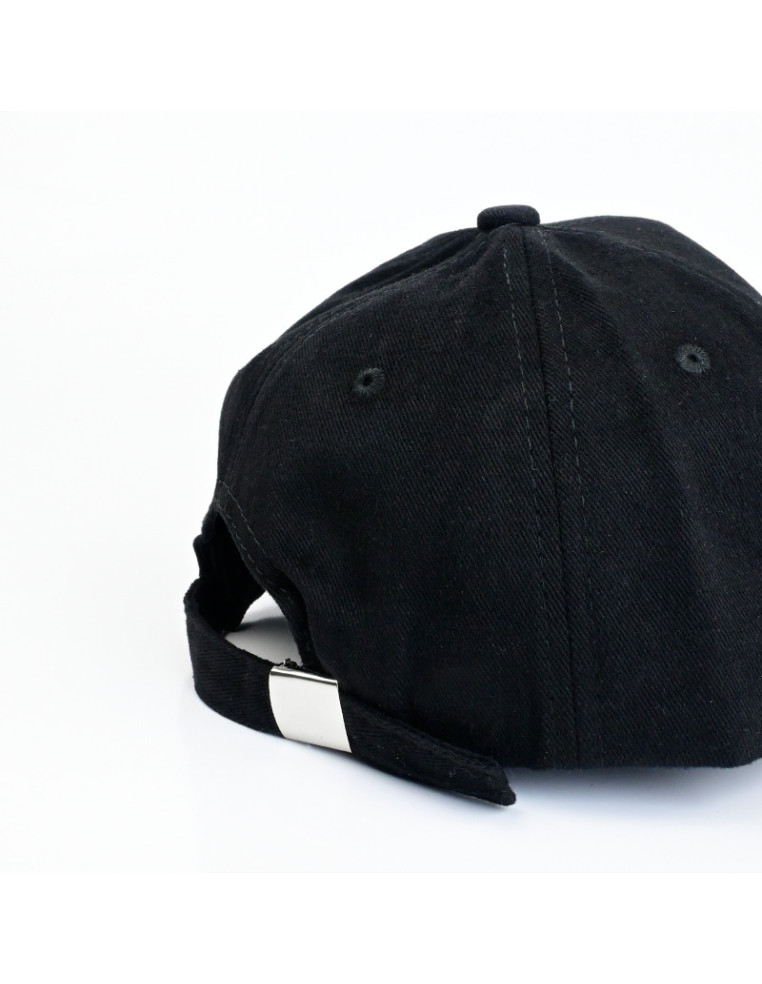 Gorra de gabardina con frase bordada y ajuste regulable.