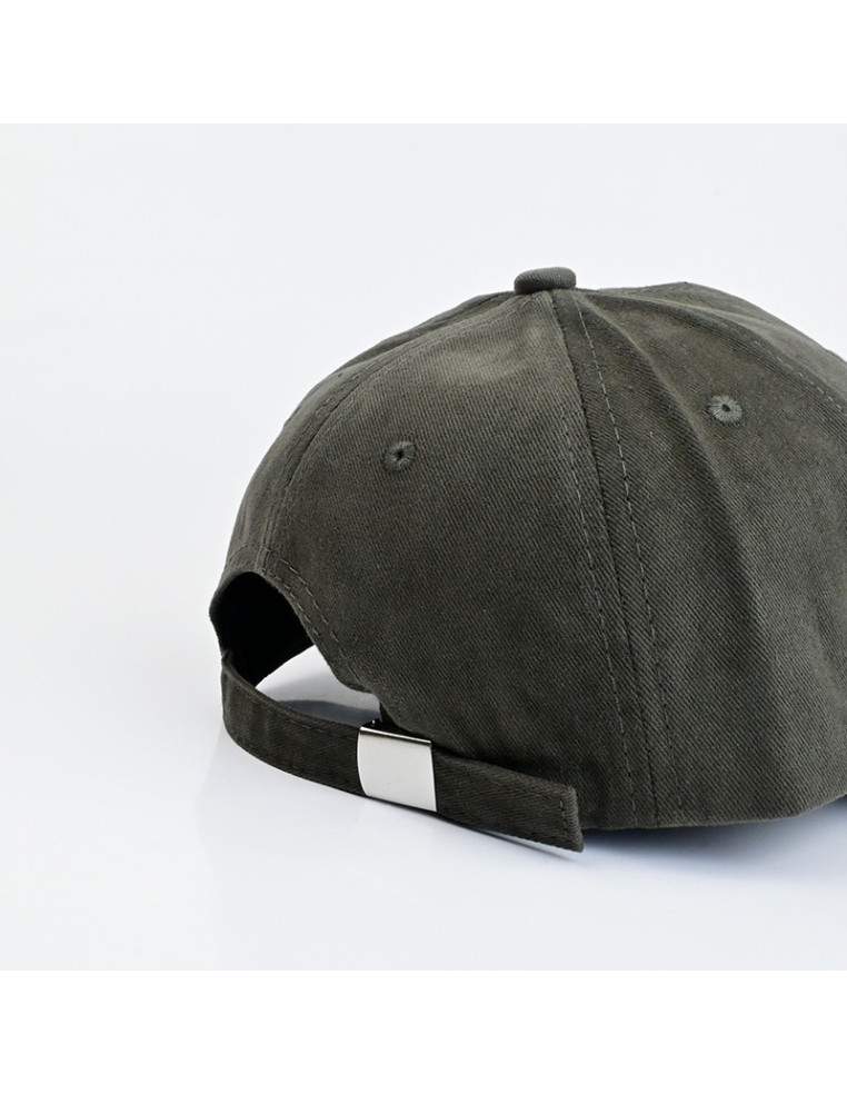 Gorra de gabardina con frase bordada y ajuste regulable.