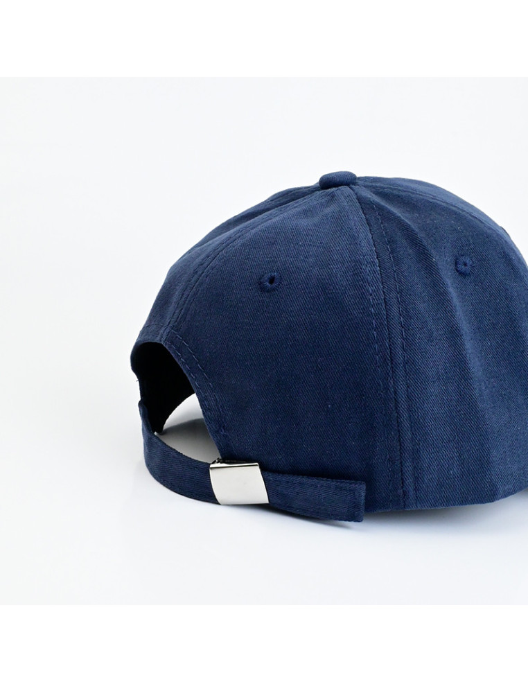 Gorra de gabardina con frase bordada y ajuste regulable.