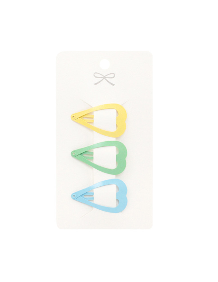 Set de 3 hebillas para pelo de metal con forma de corazón.