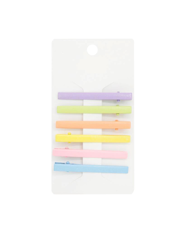 Set de 6 hebillas para pelo de metal con fomra rectangular.