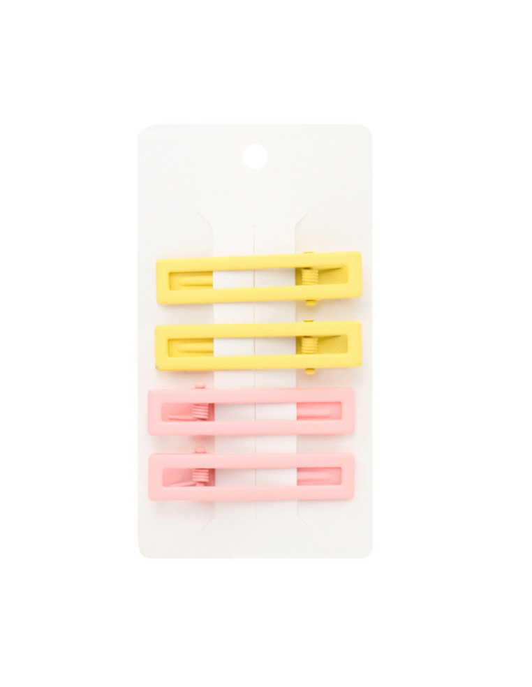 Set de cuatro hebillas de metal para pelo con forma rectangular.