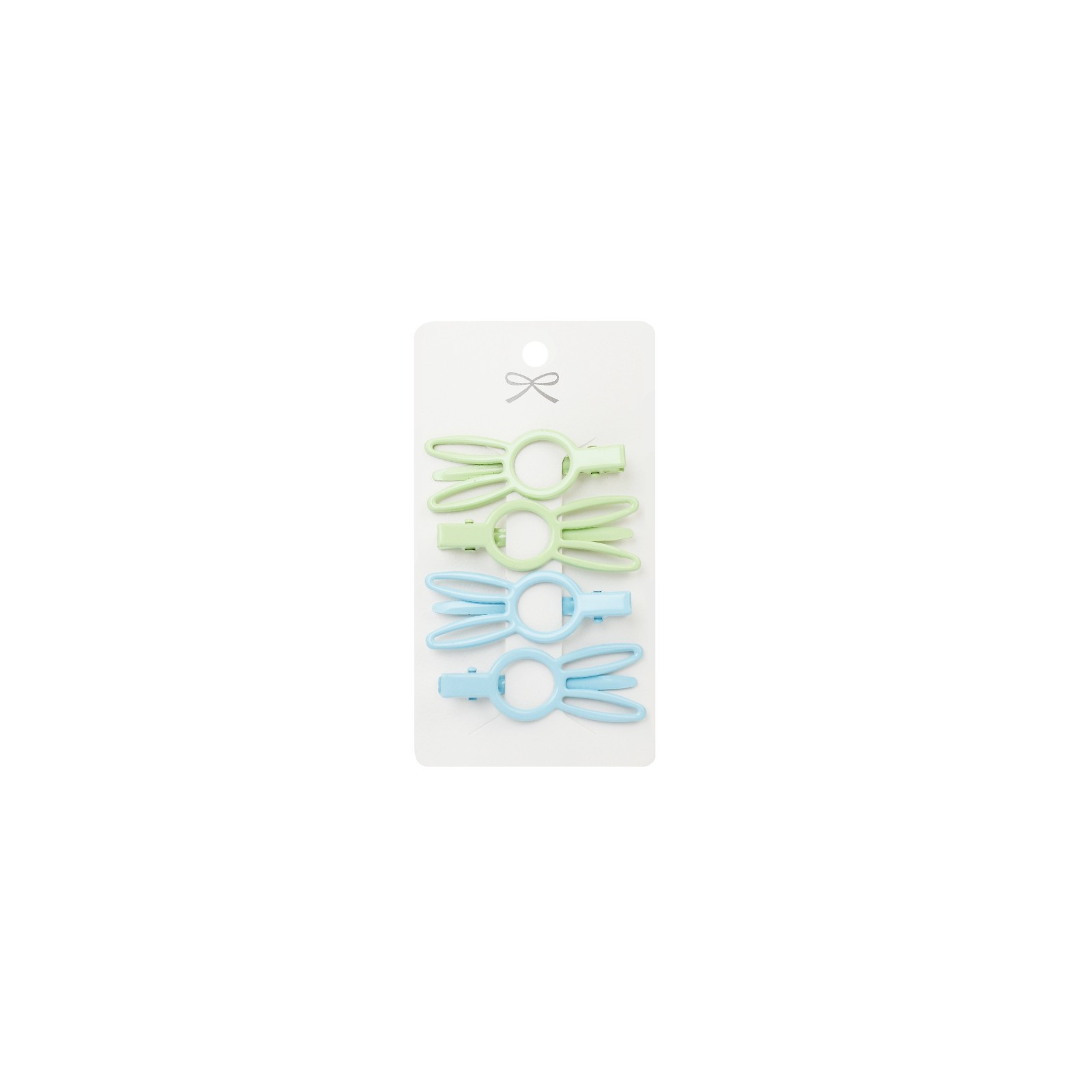 Set de cuatro hebillas de metal para pelo con forma de conejo.