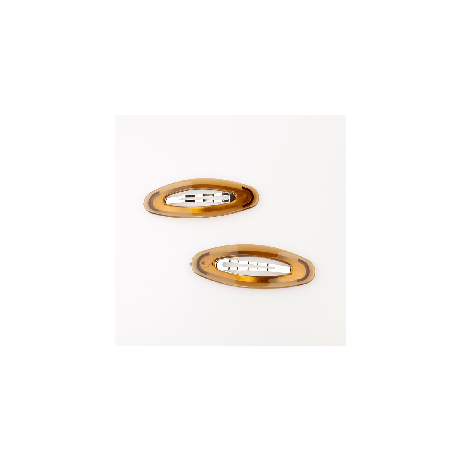Set de dos hebillas de metal con aplique acrílico para pelo con forma ovalada.