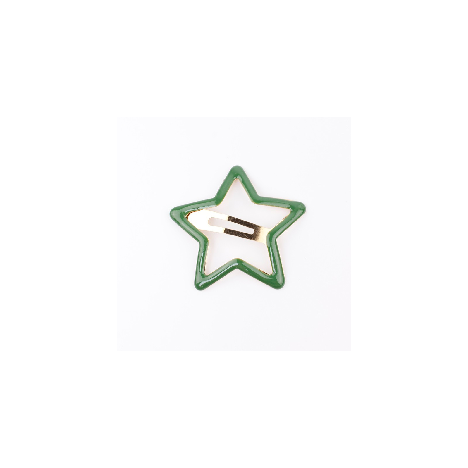 Hebilla sapito de metal pintada a mano para pelo con forma de estrella.