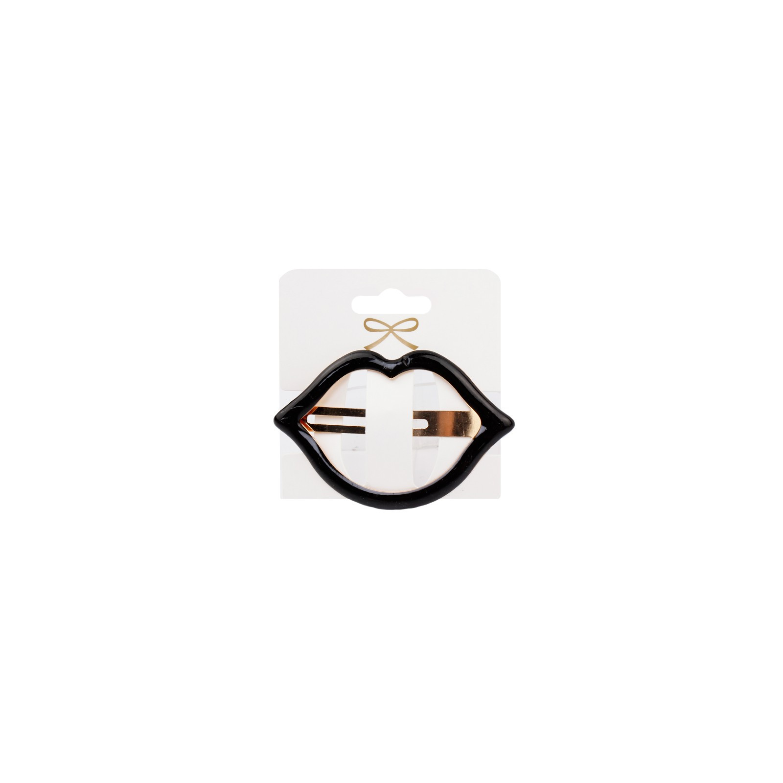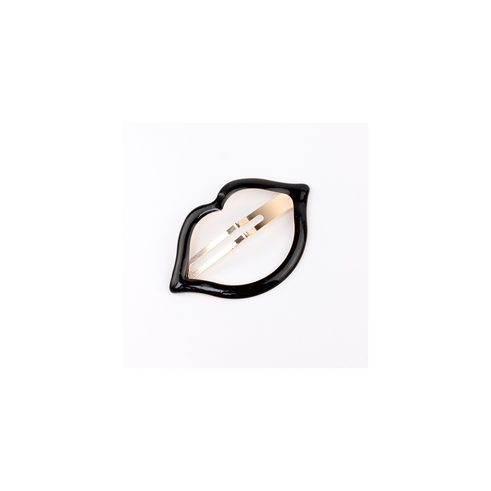Hebilla sapito de metal pintada a mano para pelo con forma de boca.