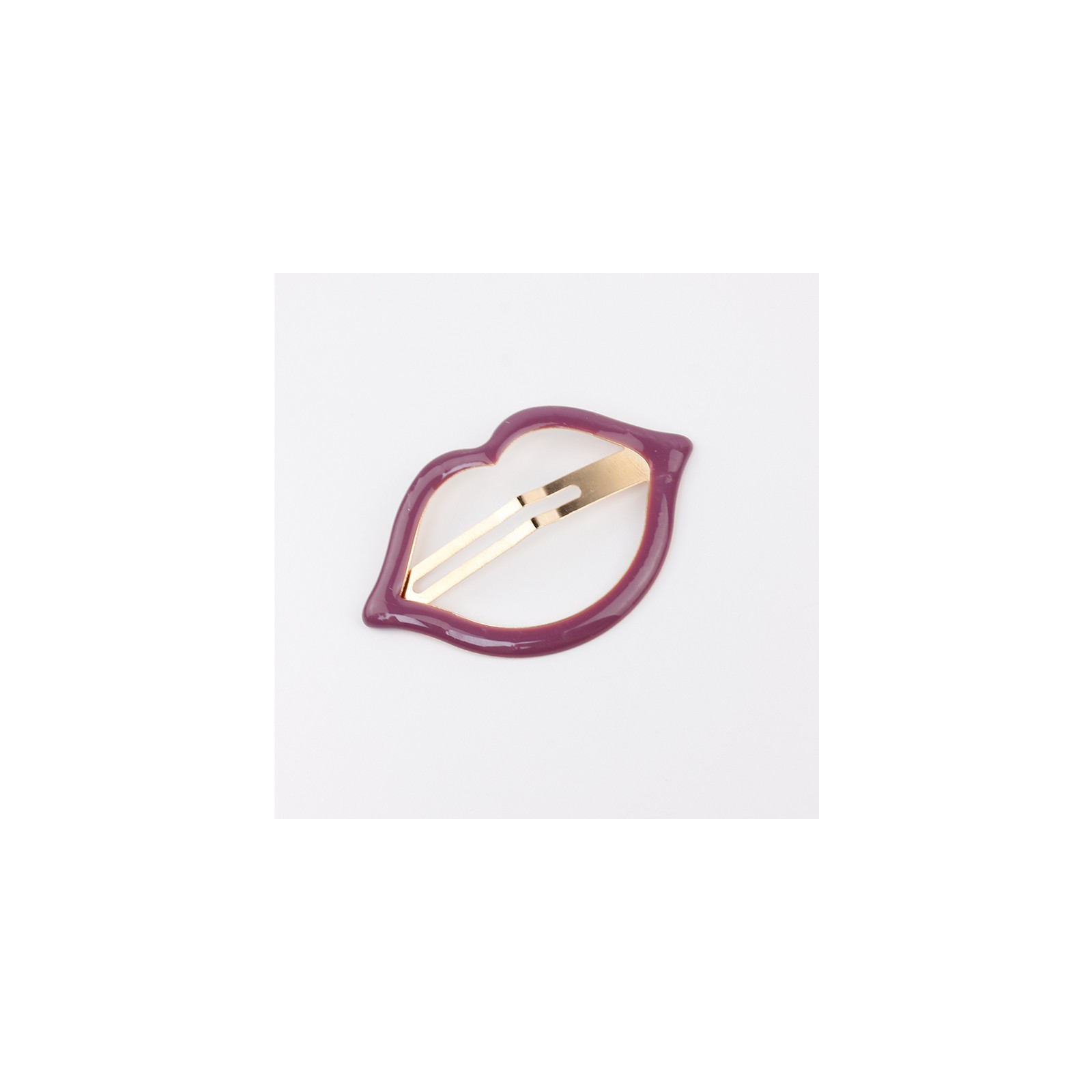 Hebilla sapito de metal pintada a mano para pelo con forma de boca.