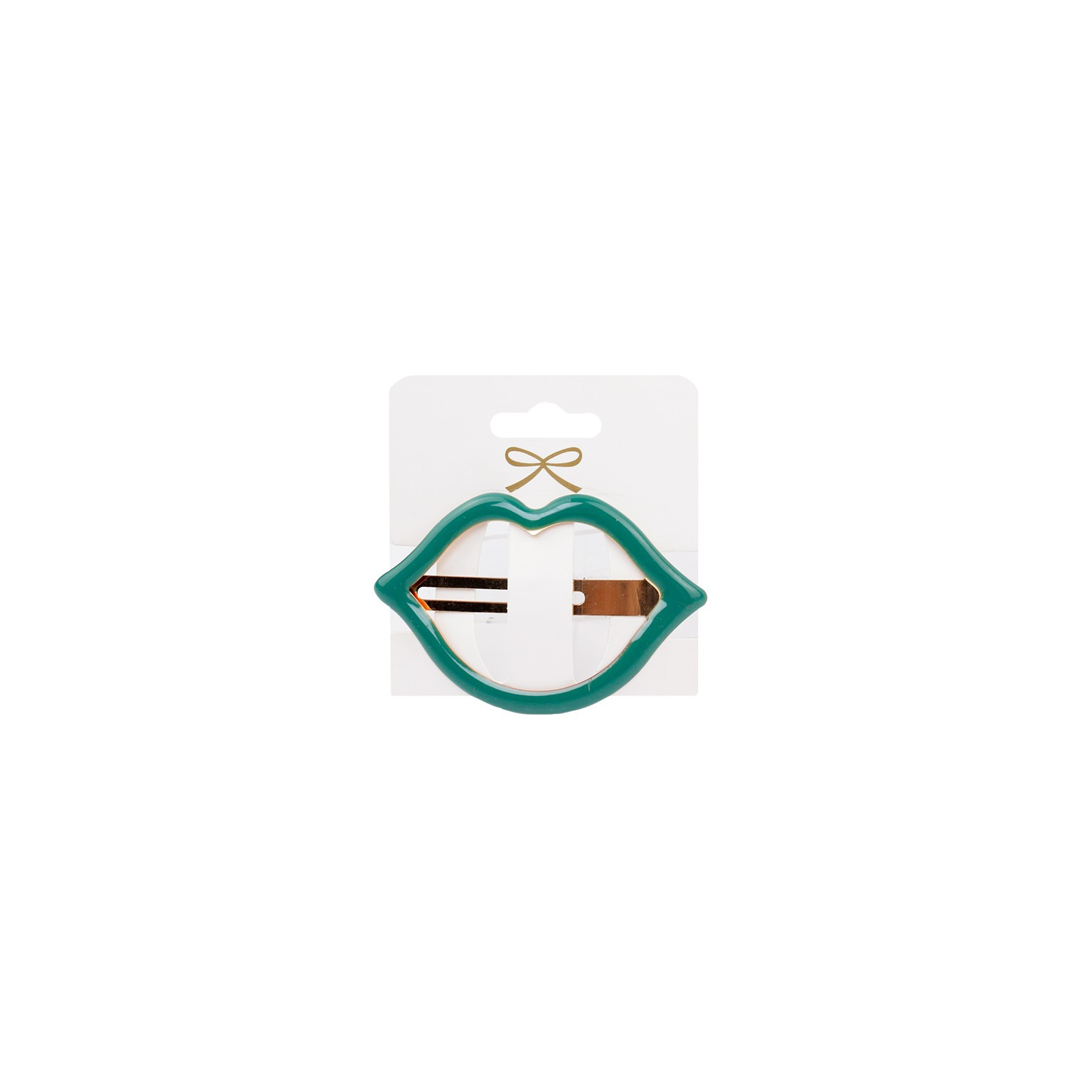 Hebilla sapito de metal pintada a mano para pelo con forma de boca.