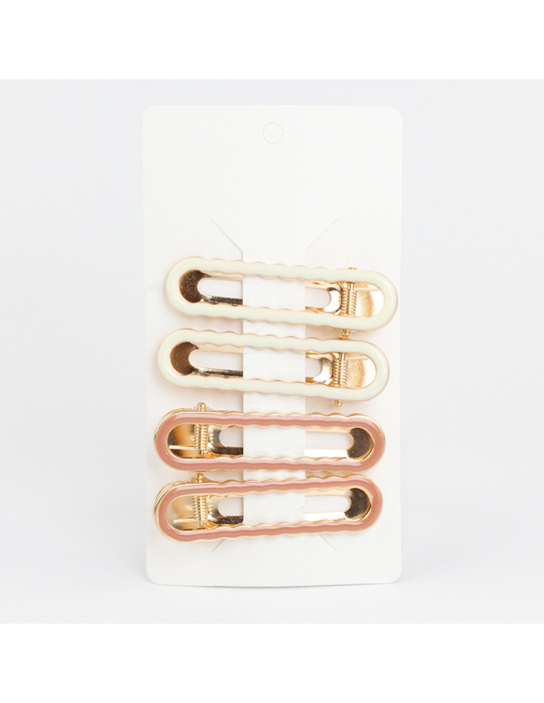 Set de cuatro hebillas de metal doradas pintadas a mano para pelo con forma oval.