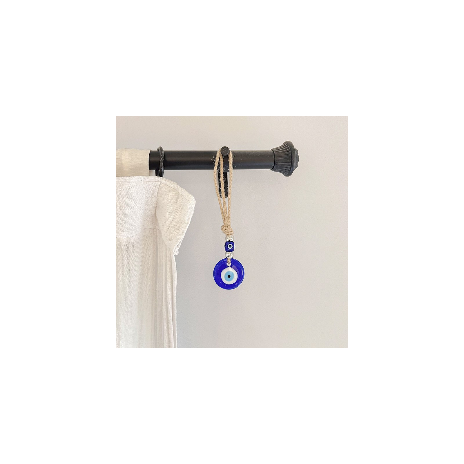 Home protection de hilo yute con macramé, ojos exclusivos de vidrio.