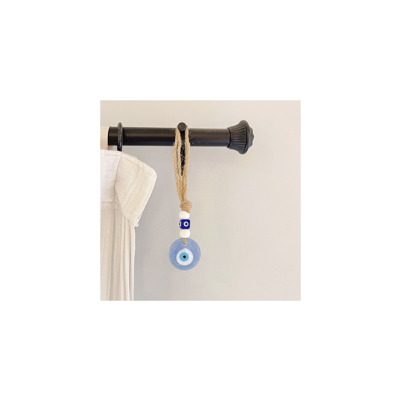 Home protection de hilo yute con macramé, ojos exclusivos de vidrio.