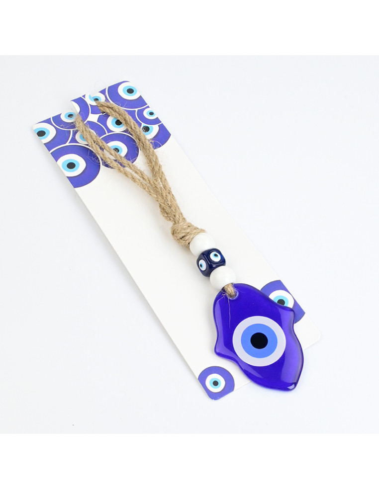 Home protection de hilo yute con macramé, ojo exclusivo de vidrio. Producto exhibido en cartón exclusivo.
