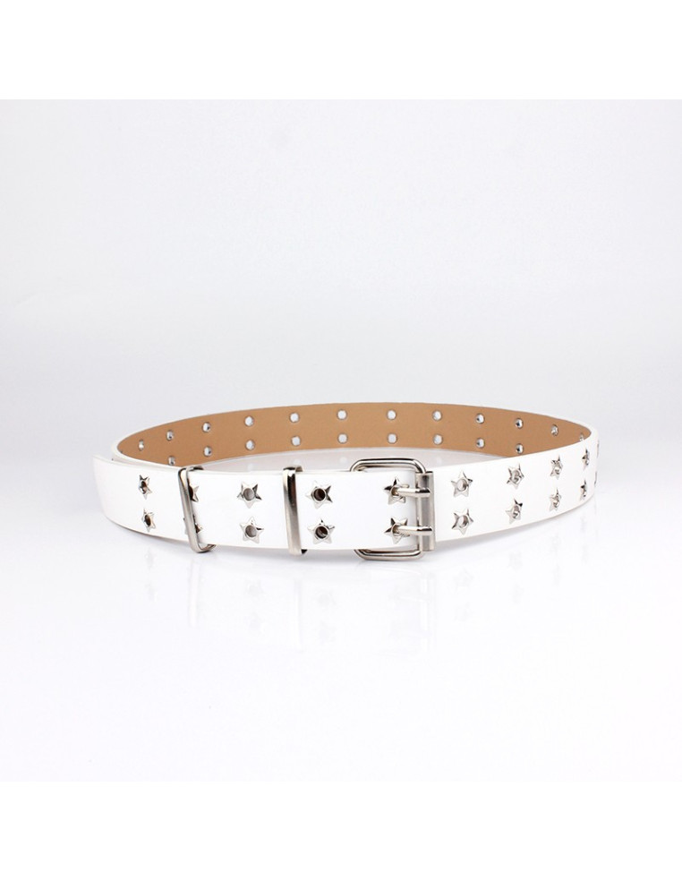 Cinturón de PU con hebilla níquel y múltiples ojales en forma de estrellas.
